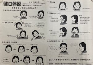 口腔機能低下症が保険診療として認められるようになったのは、東大柏の葉キャンパスで行われた大規模な調査研究、「柏スタディ」のデータが大きく寄与しています。オーラルフレイル(口の衰え)、滑舌、舌圧、咀嚼機能、嚥下機能が要介護リスクを2倍に高める事が明らかになりました。今では様々な検査キッドがあります。当院では、健康体操教室(柔体操)にて、銚子市健康管理課作成の健口体操に10年前から取り組んでいます。「パタカラ体操」も古いですが、科学的に証明された今、アップデートされています。新しいコンテンツで