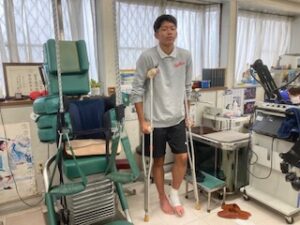 高校野球部のM君、練習中に足首を捻りみるみる腫れて歩行困難。ご両親が高校まで迎えに。大事な大会を控えて意気消沈。骨折を疑っていましたが鑑別診断したところ、所見に限局性圧痛、軋轢音なし。靭帯損傷、捻挫とお伝えして1か月後の大会に間に合うように治療をしていく計画を立てました。スポーツ障害、スポーツ医療は怪我の修復期間の練習の可否から目標設定までを診ます。これこそ、人に寄り添う、選手に寄り添うコンセプトでしっくりきます。当院の原点でもあります。頑張る子を応援したい。松葉杖は貸出し。保証金2000円はお預かりしますが、必要なくなれば、返却。保証金は返金致します